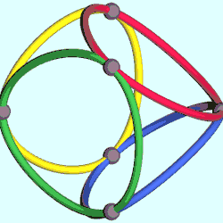 Taking half of the circles makes (62 43) with tetrahedral symmetry and 24 automorphisms. This is isomorphic to the point-line configuration complete quadrilateral.