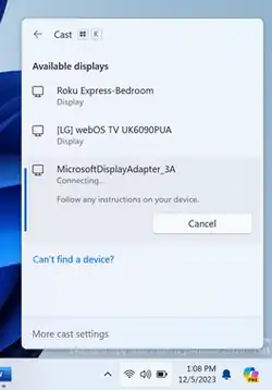- ^ "Connect a wireless display to your Windows PC - Microsoft Support". support.microsoft.com. Retrieved 2023-09-29.