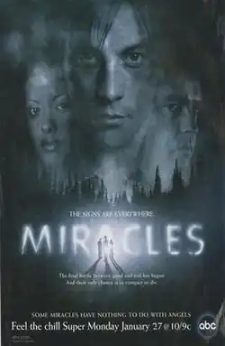 Miracles is an American mystery drama television series starring Skeet Ulrich and Angus Macfadyen that aired on ABC from January 27 to March 31, 2003. The series created by Richard Hatem and Michael Petroni, the series was dubbed a "spiritual version of The X-Files" by its creators.[1] Following the pilot, David Greenwalt, co-creator of Angel (the spin-off of Buffy the Vampire Slayer) served as the show's executive producer and head writer for the remaining twelve episodes.