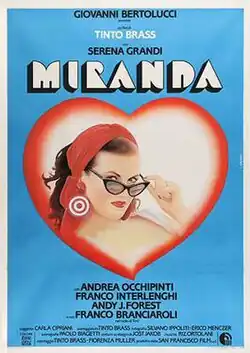 Miranda (also known as The Mistress of the Inn) is a 1985 Italian erotic drama film directed by Tinto Brass. It is loosely based on the three-act comedy La locandiera by Carlo Goldoni.[1][2]