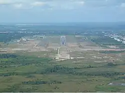 Miri International Airport is serviced by a 2,745 m × 60 m (9,006 ft × 197 ft) runway, designated Runway 02/20, and a partial, parallel taxiway at a width of 23 m (75 ft). Runway 20 is equipped with high intensity simple approach lights whereas Runway 02 has high-intensity Cat 1 precision approach lights installed. Other aids include: ILS, DVOR/DME, NDB and PAPI (slope 3°).[12] Taxiways A3, B1 and C1 that connects the runway, Apron 'A' and Apron 'B' with Taxiway A were finished after the 2016 expansion.[11]