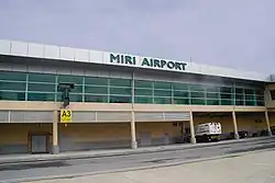 Miri International Airport is situated 9.5 km (5.9 mi) south-east of Miri's city centre and is ranked the sixth busiest domestic airport in Malaysia in terms of passenger and aircraft movement.[6] The airport has a terminal which can accommodate up to 2 million passengers annually.[7]
