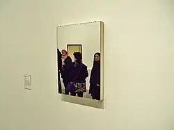 The mirror being in the place of what should be a painting, the spectator sees himself looking at a work of art[13] and the recent practice of selfies has greatly contributed to the popularity of Mirror Piece.[14]