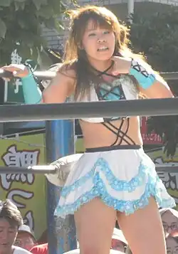 In Ibuki, which had the goal of introducing the next generation of joshi stars to the world of professional wrestling, Ohata underwent further training under Yoshida alongside the likes of Hiroyo Matsumoto, Ray and Tomoka Nakagawa, while also forming the tag team Seven Star Sisters (3S) with Matsumoto.[20] During late 2007 and early 2008, Ohata also began making appearances for various independent promotions, including Ice Ribbon,[21] JWP Joshi Puroresu,[22] Oz Academy,[23] Pro Wrestling Wave[24] and Sendai Girls' Pro Wrestling.[25] In July 2008, Ohata represented Ibuki at the Japan Expo in France.[6]