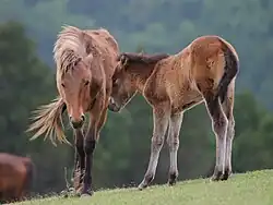 The Misaki (Japanese: 御崎馬 or 岬馬, Misaki uma) is an endangered Japanese breed of small horse. It is one of eight Japanese native horse breeds, and lives as a feral horse in a natural setting in a designated National Monument on Cape Toi (also known as Toimisaki) within the municipal boundaries of Kushima at the south end of Miyazaki Prefecture on the island of Kyūshū. The Misaki was made a Japanese National Natural Treasure in 1953.[2]: 16