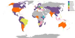 Miss World uses a continent-based format. Ten contestants from each of the four regions—Africa, the Americas and the Caribbean, Asia and Oceania, and Europe—advance to the Top 40, including Fast Track winners who qualify automatically. Judges then select a Top 5 from each region, forming a Top 20, which is further narrowed to a Top 2 per region. The four regional winners become the overall Top 4 finalists. One of them is crowned Miss World, while the others are named first, second, and third runners-up.[64][65]