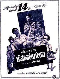 Missiamma (transl. Miss Madam) is a 1955 Indian Tamil-language romantic comedy film directed by L. V. Prasad. Produced by B. Nagi Reddy and Aluri Chakrapani's Vijaya Vauhini Studios, the script was adapted by Chakrapani from the Bengali play Manmoyee Girls School by Rabindranath Maitra. Missiamma also focused on social issues such as unemployment, corruption, and freedom of worship. Missiamma tells the story of two unemployed people of different religions and mentalities: Balu and Mary. They pose as a married couple to obtain jobs in a high school founded by Gopal, the zamindar of Aandipettai. As Balu and Mary fall in love, Gopal's nephew Raju (an amateur detective) learns that Mary is Gopal's missing elder daughter Mahalakshmi; she is unaware of her true identity.