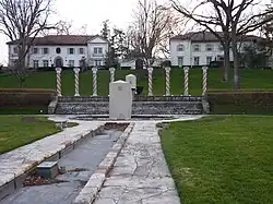 The city's most distinctive landmark, which is used on the official city seal, is the Verona columns and reflecting pool at the intersection of Ensley Lane, Mission Drive and Overhill Road. They were conceived by landscape architect S. Herbert Hare in 1924.[9]