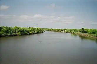 The Mission River is a river located in Texas, in the United States of America. It is formed by the confluence of Blanco and Medio creeks in central Refugio County (at 28°19' N, 97°19' W) and runs southeast, past Refugio, for 24 miles (39 km) to its mouth on Mission Bay, an inlet of Copano Bay (at 28°10' N, 97°10' W). It traverses gently undulating coastal prairies surfaced by clay and loam and spotted by groves of hardwoods and pines. It is home to myriad waterfowl and native slough grasses.