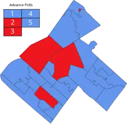 Winning party in each polling division of Mississauga—Streetsville at the 2025 Ontario general election