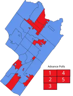 Winning party in each polling division of Mississauga East—Cooksville at the 2025 Ontario general election
