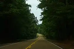 MS 32 continues winding its way east through mostly farmland to cross the Skuna River and Houlka Creek to pass through New Houlka before having a concurrency with MS 15 south for a few miles. The highway now heads east through hilly woodlands for several miles (part of the Tombigbee National Forest) to pass through Van Vleet, where it has an interchange with the Natchez Trace Parkway (as well as an intersection with unsigned MS 385), before traveling through flat farmland for a few miles. MS 32 now enters the Okolona city limits and becomes shortly thereafter with MS 41. They continue east for a short distance to an intersection with MS 245, where the MS 32 designation ends and MS 41 continues east (signed south) towards US 45 Alternate (US 45A) and Amory.[3]