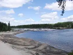 The Mistassini River is a river in central Quebec, Canada, draining into the north-western portion of Lac Saint-Jean. It is 298 kilometres (185 mi) long and has a watershed area of 21,900 square kilometres (8,500 sq mi).[1] Its source is between Eau Froide and De Vau Lakes in the northernmost portion of the Rivière-Mistassini Unorganized Territory, just east of the vast Baie-James Municipality.