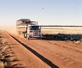 | Road freight on the Mitchell Highway between Cunnamulla and Charleville, 1979 | |