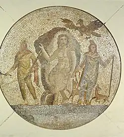In some depictions, Cautes and Cautopates are also present; sometimes they are depicted as shepherds.[33]