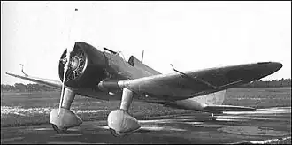 Labeled the Mitsubishi Ki-33, the modified design was powered by a Nakajima Ha-1-Ko engine rated at 555 kW (744 hp) at 3,700 m (12,100 ft). An aft-sliding canopy was added, the aft fuselage decking was raised and the vertical tail surfaces were modified. The prototypes were completed during the early summer of 1936. Service trials from November 1936 until the spring of 1937 proved that the Kawasaki Ki-28 was the fastest of the three contenders,[2] but the Nakajima Ki-27 was by far the most maneuverable, and on this basis was selected by the Imperial Japanese Army Air Force.[3][4]