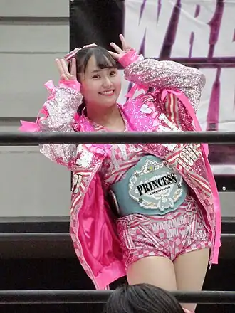 Miu Watanabe (渡辺未詩, Watanabe Miu; born October 19, 1999) is a Japanese professional wrestler working for the Japanese promotion Tokyo Joshi Pro Wrestling, where she is also a former International Princess Champion, a former Princess of Princess Champion and a former Princess Tag Team Champion.[3][4]