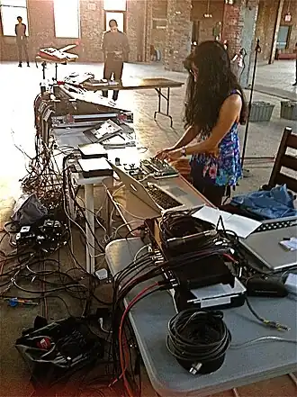Miya Masaoka (born 1958, Washington, D.C.)[1] is an American composer, musician, and sound artist active in the field of contemporary classical music and experimental music. Her work encompasses contemporary classical composition, improvisation, electroacoustic music, inter-disciplinary sound art, sound installation, traditional Japanese instruments, and performance art.[2] She is based in New York City.