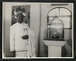 The Germans disputed that Mkwawa's skull had been removed from East Africa and the British government took the position that the whereabouts could not be traced.[4] However, after World War II the Governor of Tanganyika, Sir Edward Twining, took up the issue again. After enquiries he was directed to the Bremen Museum which he visited himself in 1953. The Museum had a collection of 2000 skulls, 84 of which originated from the former German East Africa. He short-listed the ones which showed measurements similar to surviving relatives of Chief Mkwawa; from this selection he picked the only skull with a bullet-hole as the skull of chief Mkwawa. The skull was finally returned on 9 July 1954, and now resides at the Mkwawa Memorial Museum in Kalenga, near the town of Iringa.