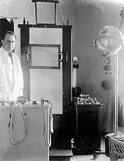 In 1931, Stojanović was contracted to the Prijedor branch of the state railway company to provide healthcare for its employees.[29] In 1936, he was contracted to an iron ore mining company in Ljubija, a town near Prijedor, and would visit the mining company clinic twice a week.[30] He also taught hygiene at the gymnasium in Prijedor.[31] Together with other intellectuals from the town, he gave lectures to the miners at their club in Ljubija. His lectures were usually about medical issues, but he also described the economic and social position of workers in more advanced countries. He socialised with the miners and treated their family members free of charge.[30] He was very active socially, and also participated in sports. In 1932, he founded the tennis club of Prijedor, which continues to bear his name.[26][32] Stojanović once bought new kit for all members of the Rudar Ljubija football club.[33] His contracts with the railway company and the mining company were both terminated in 1939. The railway employees protested in Prijedor, and Stojanović's contract with that company was subsequently renewed.[29]