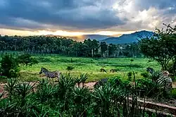 The sanctuary serves as a headquarters for the Big Game Parks including Mlilwane's sister reserves Hlane Royal National Park and Mkhaya Game Reserve. The Sanctuary covers 4,560 hectares in the Ezulwini Valley or "Valley of Heaven". Formerly a farming and tin mining area, the area has been rehabilitated and is now Eswatini's most frequently visited reserve. Abundant wildlife grace the plains. The southern section is predominately open grassland plains with middleveld vegetation, stretching up onto Nyonyane Mountain. Tourist activities are concentrated in the southern section which can be explored by foot, horseback, mountain bikes or vehicle. The northern section includes one of the highest points in the area at Luphohlo. Only guided trails enter this part of the sanctuary. Mlilwane means Little Fire, a reference to the many fires started by lightning strikes on Mlilwane Hill.[1]