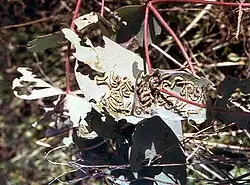 The larvae feed on Eucalyptus species and is considered a pest for Eucalyptus plantations.[1]