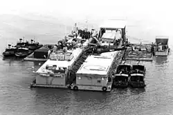 Each river assault group, later designated river assault squadron, was to consist of the following: 52 Armored Troop Carriers (ATCs or "Tangos"), 10 Monitors with 40mm cannon and 81mm mortar, 32 Assault Support Patrol Boats (ASPBs), 5 Monitors to serve as command and control boats and 2 LCM-6s to serve as refuelers. A salvage force would include: 2 2,000-ton heavy lift craft, 2 YTBs for salvage, 2 LCUs (Landing Craft, Utility), and 3 100-ton floating dry docks.[1]