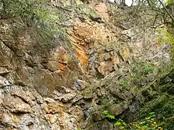 The area contains several notable formations. One of them is a quarry just east of the reservoir. It is in the part of the gully with the Proterozoic rocks. Gray and greenish greywacke, siltstone and clay shale are visible in the profile of quarry. About half a kilometer down the road to the west we can see the rock dobříšských conglomerates. Over 200 m west is another quarry with occurrence of siltstone and offal. Third quarry can be found about 100 m further to the west, south of the road. There are striking oblique fault štěchovických offal and siltstone, some cracks are healed quartz mineralized solutions are highly conspicuous rusty color coming from limonitových residues. Less than 400 m further west we get to Závitskému rearrangement, which is not well exposed.[5][3]
