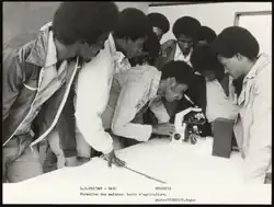 After the Derg came to power in 1974, educational system of Ethiopia merely consisted of socialist ideology and adopted as a new education policy. This view charted by the National Democratic Revolution (NDR) in 1976, further elaborated five volume policy documents known as General Directives of Ethiopian Education produced by the Ministry of Education in 1980.[26] Another aim of education endorsed by the ruling party in 1984 as: