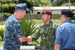Tawih meeting Rear Adm. Charles Williams during the opening ceremony of ADMM Plus Maritime Security and Counterterrorism Field Training Exercise in 2016
