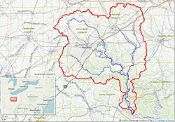 The Mohican River is a principal tributary of the Walhonding River, about 40 miles (64 km) long,[4] in north-central Ohio in the United States. Via the Walhonding, Muskingum and Ohio Rivers, it is part of the watershed of the Mississippi River, draining an area of 999 square miles (2,590 km2).[5]