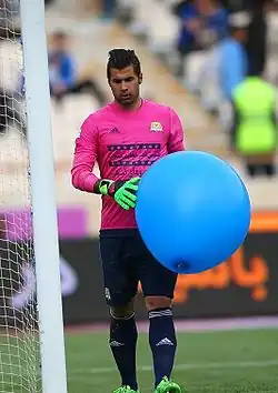 Mohsen Forouzan (Persian: محسن فروزان; born 3 May 1988) is an Iranian footballer who plays for Shams Azar in Persian Gulf Pro League as a goalkeeper.[2] He is also capped by the Iran national football team.
