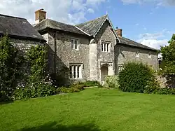 The old manor house burnt down in 1868 and was completely rebuilt as a farmhouse, categorised as a grade II listed building since 1955.[5] The ruins of a mid-16th century gatehouse lie to the south of the house; these and the adjoining garden walls, probably built in the mid-19th century at the same time as the farmhouse, are grade II* listed.[6][7] The house now has six reception rooms and six bedrooms. Around the courtyard are a cottage, stables and farm buildings. The River Otter forms part of the eastern boundary of the estate. In January 2014 the house with 228 acres was offered for sale for £3.5 million.[8]