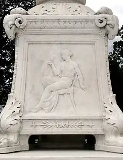 Aside from actual temples, there was also altars to the Moirai. Among them was notably the altar in Olympia near the altar of Zeus Moiragetes,[78] a connection to Zeus which was also repeated in the images of the Moirai in the temple of Despoine in Arkadia[83] as well as in Delphi, where they were depicted with Zeus Moiragetes (Guide of Fate) as well as with Apollon Moiragetes (Guide of Fate).[84] On Korkyra, the shrine of Apollo, which according to legend was founded by Medea was also a place where offerings were made to the Moirai and the nymphs.[85] The worship of the Moirai are described by Pausanias for their altar near Sicyon: