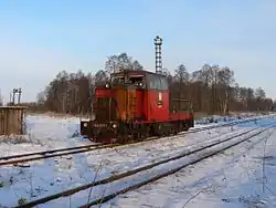 The Mokeiha–Zybinskoe peat railway (Russian: Узкоколейная железная дорога Мокеиха-Зыбинского торфопредприятия) is located in Yaroslavl Oblast, Russia. The peat railway was opened in 1950, and has a total length of 15 kilometres (9.3 mi) and is operational as of 2016. The track gauge is 750 mm (2 ft 5+12 in) and operates year-round.[1] 57°49′34″N 37°23′10″E / 57.82601°N 37.38602°E / 57.82601; 37.38602