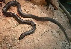 The mole snake (Pseudaspis cana) is a species of snake. It has been placed in the family Lamprophiidae, and more recently in the family Pseudaspididae, along with the genus Pythonodipsas. It is native to much of southern Africa, and is the only member of the genus Pseudaspis. A study showed that P. cana is caught and consumed by the honey badger, among other species. Remains of the mole snake were found in the faeces, and suggest the consumed individuals were larger specimens.[3]