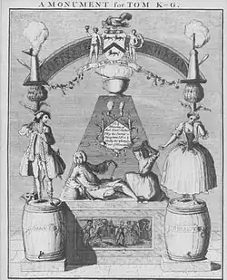 Tom King was born in 1694 to Thomas King, a squire from Thurlow, Essex, and Elizabeth Cordell, the daughter of Baronet Sir John Cordell. He was educated at Eton and King's College, Cambridge but was expelled (for reasons unknown) and eventually drifted to Covent Garden where he worked as a handyman, and met Moll (real name Elizabeth Adkins) in 1717.