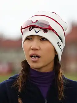 Momoko Ueda (上田 桃子, Ueda Momoko; born 15 June 1986) is a Japanese female professional golfer who in 2007 at the age of 21 became the youngest player in the history of the LPGA of Japan Tour (JLPGA) to finish first on the money list.[1] She also played on the United States–based LPGA Tour for six years.