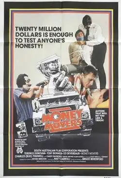 Money Movers is a 1978 Australian crime action drama film[3] written and directed by Bruce Beresford. The film was based on the 1972 novel The Money Movers by Devon Minchin, founder of Metropolitan Security Services.[4] The story deals loosely with two real-life events, the 1970 Sydney Armoured Car Robbery where A$500,000 was stolen from a Mayne Nickless armoured van, and a 1970 incident when A$280,000 was stolen from Metropolitan Security Services' offices by bandits impersonating policemen.[5]