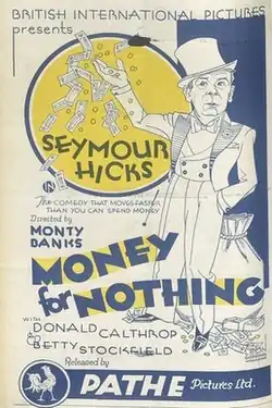 Money for Nothing is a 1932 British comedy film directed by Monty Banks and starring Seymour Hicks, Betty Stockfeld and Edmund Gwenn.[1] It was produced by British International Pictures and shot at the company's Elstree Studios near London.[2] A French-language remake of the film Love and Luck, also directed by Banks, premiered later in the year.