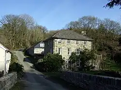 The earliest-known written records of Monington are from the 13th century when knight's fees were contributing to the manor of Maenclochog.[8] Parishioners of Monington in the 16th century held ancient grazing rights in the Preseli Mountains resulting from an historic association with St Dogmael's Abbey.[9] From 1536 Monington was in the Hundred of Cemais,[1] and it is marked as Egloiswither on a 1578 parish map of Pembrokeshire.[10] An 1838 tithe map of Monington shows named buildings, mills, mill leat, mill pond, gardens (with paths), farmyards, fences, orchard, parkland, woods, quarry (gravel), hill-drawing, footpath and/or bridleway, waterbodies, springs, well and a kiln.[11]