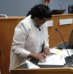 Allegations were also made against Holsey-Hyman accusing her of using the help of a city staffer for her election campaign work while the staffer was working on city time, therefore being paid by government funds.[14] There were two separate incidents involving city staffers and campaign work, one in September 2022 and one in January 2023.[14] The city council looked to censure her for these incidents.[14] In response to the allegation for the September incident, Holsey-Hyman defended herself, saying that she was new to the council and wasn't aware of the rules about staffers.[15] In response to the January incident, she said that she had been granted approval for the staffer to volunteer for her by the city's human resources department.[15][16] In her defense speech, Holsey-Hyman stated, "I've come through a lot of storms. But never has my character been questioned."[15] The city staffer was formally disciplined for engaging in campaign activity on Holsey-Hyman's behalf while on work duty and using city resources.[17] Councilwoman DeDreana Freeman supported Holsey-Hyman against the staffer allegations, claiming that gender may be playing a role in how the city council is responding.[15]