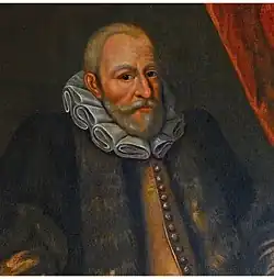 In 1613, William Jones, a prominent merchant and haberdasher, gave the Haberdashers’ Company £6,000, followed by a further £3,000 bequeathed in his will on his death in 1615, to "ordaine a preacher, a Free-School and Almes-houses for twenty poor and old distressed people, as blind and lame, as it shall seem best to them, of the Towne of Monmouth, where it shall be bestowed".[3] Jones was born at Newland, Gloucestershire[4] and brought up in Monmouth, leaving to make a sizeable fortune as a London merchant engaged in the cloth trade with the continent.[a][6] The motivations for his bequest appear partly philanthropic and partly evangelical; the county of Monmouthshire in the early 17th century had a significant Catholic presence[7] and the local historian Keith Kissack noted, "the priority given to the preacher illustrates [Jones's] concern to convert an area in the Marches which was still, when the school opened in 1614, strongly recusant".[b][9] The order for the establishment of the school was made, retrospectively by James I in 1616 and decreed "for ever in the town of Monmouth, one almshouse and one free grammar school".[10]