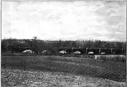 During the American Civil War the Union used the canal to transport war materials and troops along the border between Maryland, Virginia, and points west. For this reason, the canal and the aqueducts were often under Confederate attack. There were many Confederate sympathizers among the canal employees, including Thomas Walter, keeper of Lock 27.[1] Walter loved the South, but he loved the Monocacy Aqueduct more. When he learned that Confederate General D. H. Hill had orders to destroy it in order to halt boat traffic during the Antietam campaign in September 1862, Walter convinced Hill that draining the canal would achieve the same end. Walter saved the Monocacy Aqueduct, only for it to be threatened once again a few days later when another Confederate party attempted to blow up the aqueduct. However, the soldiers were unable to drill enough holes into the hard stone to place enough explosives to breach the structure.