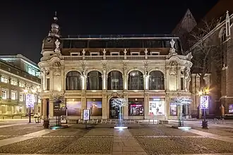 It was built in 1892 in what was then Breslau, Germany, in Art Nouveau/Neo-Baroque style on the site of the graveyard of St Dorothy's Church.[1] The graveyard had been converted into a jail in 1817. The plot was bought near the end of the 19th century for 600 000 marks by Breslau's Jews - banker Wallenberg Pachaly and architect Karl Grosser, who built a trade house and hotel in which there were 69 rooms, including 21 single occupation rooms, 46 double occupation and 2 apartments. Room size ran from 10 to 36 square metres (110 to 390 sq ft) and according to 19th century standards were luxurious. It was fondly christened "the pearl of Lower Silesia" (die Perle Niederschlesiens).
