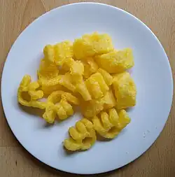 Monster Munch are a British baked corn snack created by Smiths in 1977 and manufactured by Walkers. They are aimed at children and widely consumed in the United Kingdom.[1] Flavours include Roast Beef, Pickled Onion and Sweet and Spicy Flamin' Hot.[2]