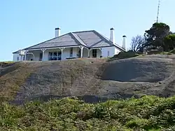 The precinct is situated high on the southern, larger segment of the Island and the lighthouse rises prominently from a large granite boulder on the eastern side of the precinct. It is a pleasing structure with an affinity with its setting, partly due to its construction of granite quarried from the Island.[2]