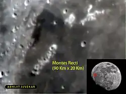 Montes Recti is a mountain range on the northern part of the Moon's near side. It was given the Latin name for "Straight Range". The name was approved in 1961 by the International Astronomical Union (IAU).[1]