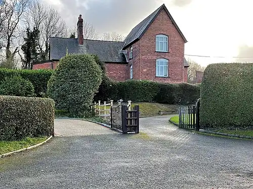 The station was 40+1⁄4 miles (64.8 km) from Whitchurch,[5] in Shropshire, between Forden and Abermule[6] and was situated more than 1 mile (1.6 km) from the town of Montgomery.[5] It had two platforms which were slightly staggered, and the station building was on the northern side; there was also a signal box and goods shed.[5]