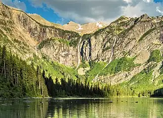Monument Falls is a waterfall located in Glacier National Park, Montana, US. It descends from meltwater off Sperry Glacier en route to Avalanche Lake. Numerous other waterfalls are located in the immediate area, but they remain unnamed.[2][3]